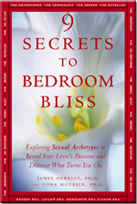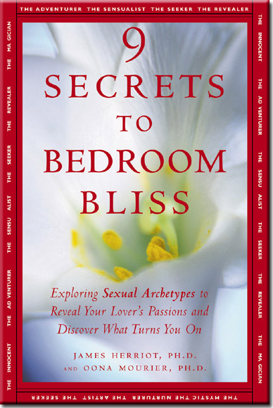 "possibly the most unusual sex manual of late" 9 SECRETS TO BEDROOM BLISS Exploring Sexual Archetypes to Reveal Your Lover's Passions andDiscover What Turns You On By James Herriot, Ph.D. and Oona Mourier, Ph.D. Joseph Campbell meets Dr. Ruth in this entertaining and enlightening sex manual. Sexologists Oona Mourier and Jim Herriot identify nine sexual archetypes, and describe how each approaches sex, love, and life. Readers learn which archetypes they and their lovers represent, what their compatibilities are, what their potential clashes may be, and how to resolve those clashes. Most importantly, they learn how to draw upon the aspects of all the archetypes, thereby eliminating boredom in the bedroom and maximizing their sexual pleasure. The intent is serious, but the approach is lively, fun, and upbeat. Each section offers suggestions for setting the stage: costumes, props, music, foods, atmosphere. Plus step-by-step exercises couples can work through together to evoke the archetypes and explore them to their fullest. It provides concrete instruction, but also shows readers how to explore the magical and mystical aspects of sex as well. Sexual archetypes are the roadmap of your sexuality. These archetypes chart the different ecstatic faces you wear during your moments of bedroom bliss. They can illuminate your intimate sublime moments. Sexual archetypes describe the full spectrum of how you can truly make loveengaging, heartfelt, exciting, soulful, beautiful love. Sexual archetypes represent a paradigm shift in how to think about, live out, and fully enjoy your sexuality. 9 Secrets of Bedroom Bliss will transform your sex life, teaching you to bring spontaneity, creativity, and magic to your sexuality. JimandOona@Blissinbed.com |